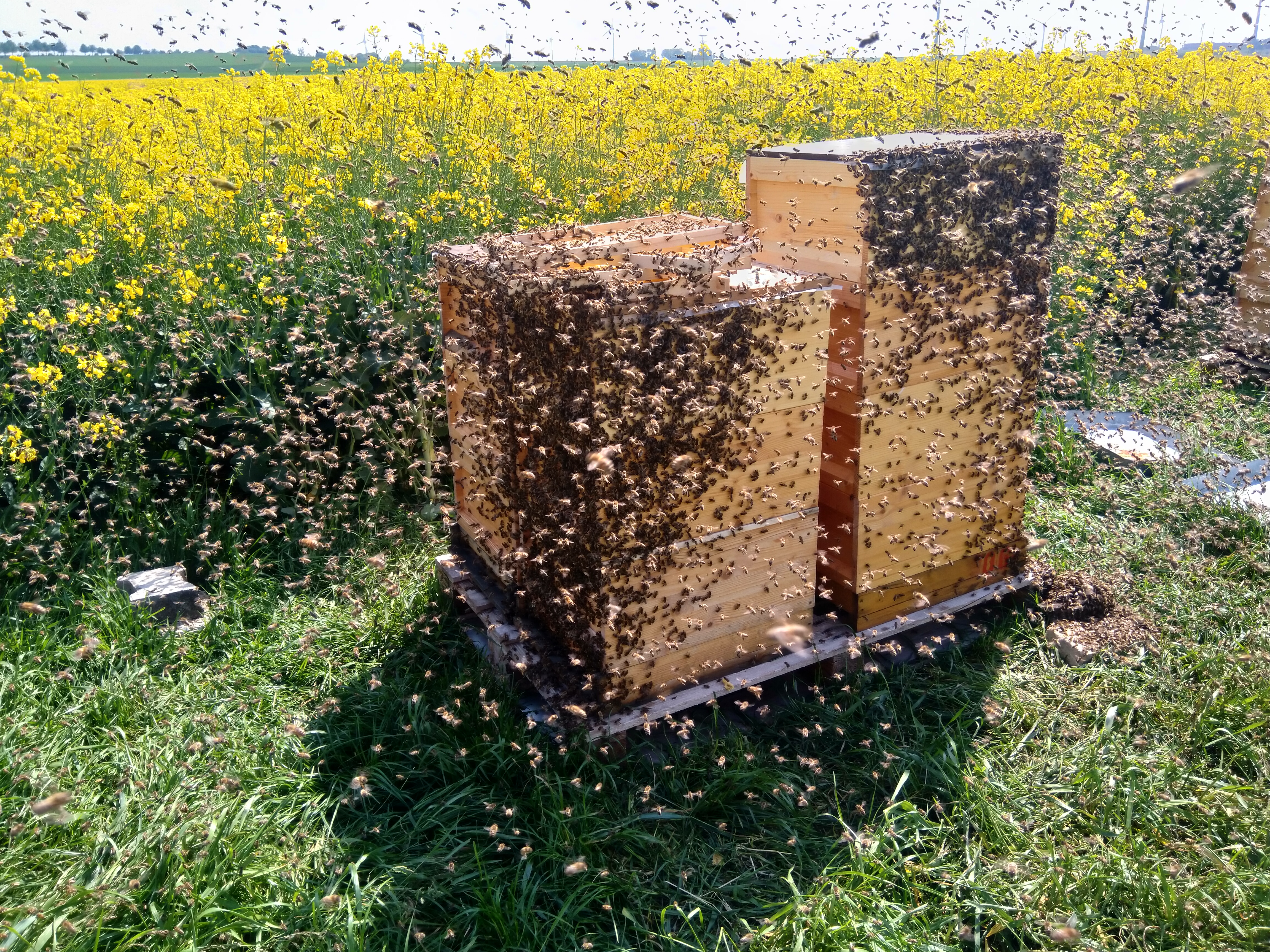 Für die Bienen ist, so paradox es klingen mag, allerdings gerade Halbzeit. Das Bienenjahr beginnt mit der Sommersonnenwende und der Vorbereitung auf den Winter. Jetzt kurz vor der Wintersonnenwende sind die Völker in der Winterruhe. Sobald die Tage wieder länger werden beginnt die Bruttätigkeit und damit die Vorbereitung auf den Frühling. Ein Volk besteht derzeit aus circa 5.000 bis 7.000 Bienen mit ihrer Königin. Zur Sommersonnenwende 2021 werden das dann wieder 50.000 Bienen mit Ihrer Königin und tausenden Drohnen sein. Dieses exponentielle Wachstum der Bienenvölker ist ein jährlich wiederkehrendes phänomenales Naturerlebnis, das leider nur wir Imker genießen dürfen.